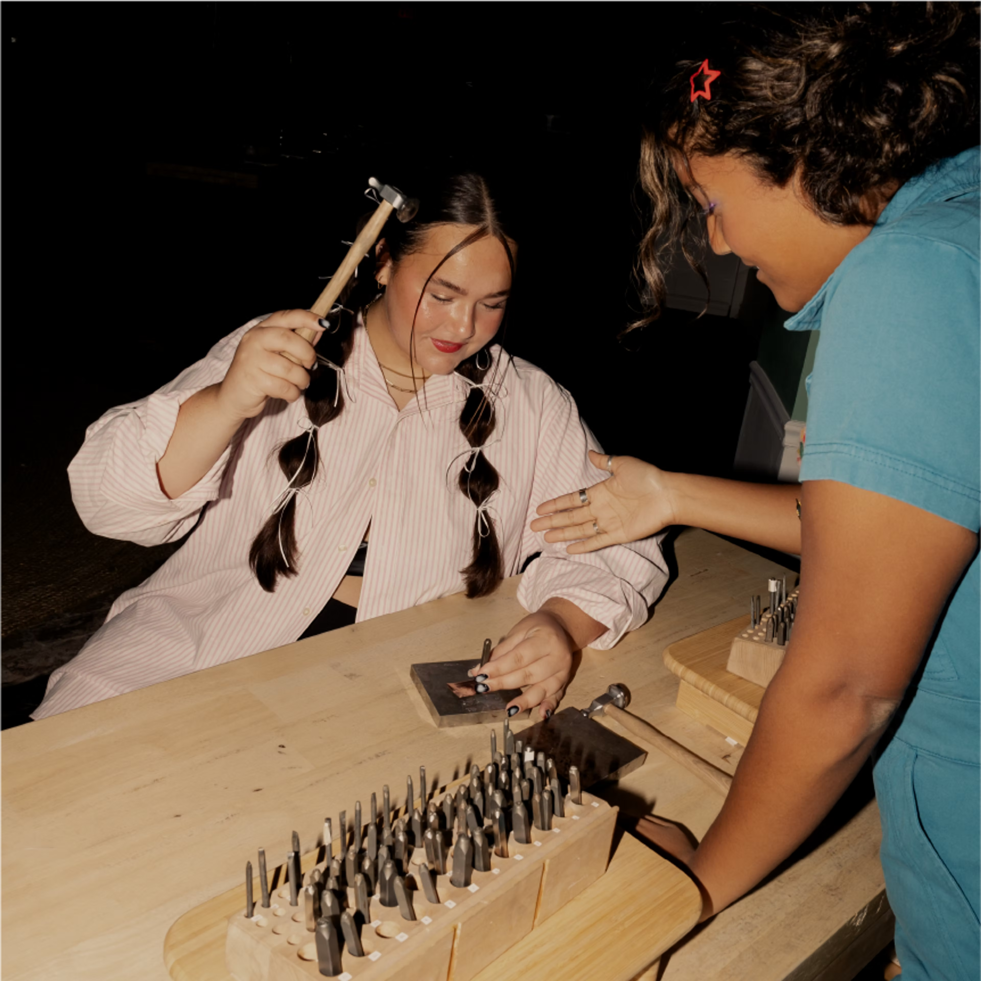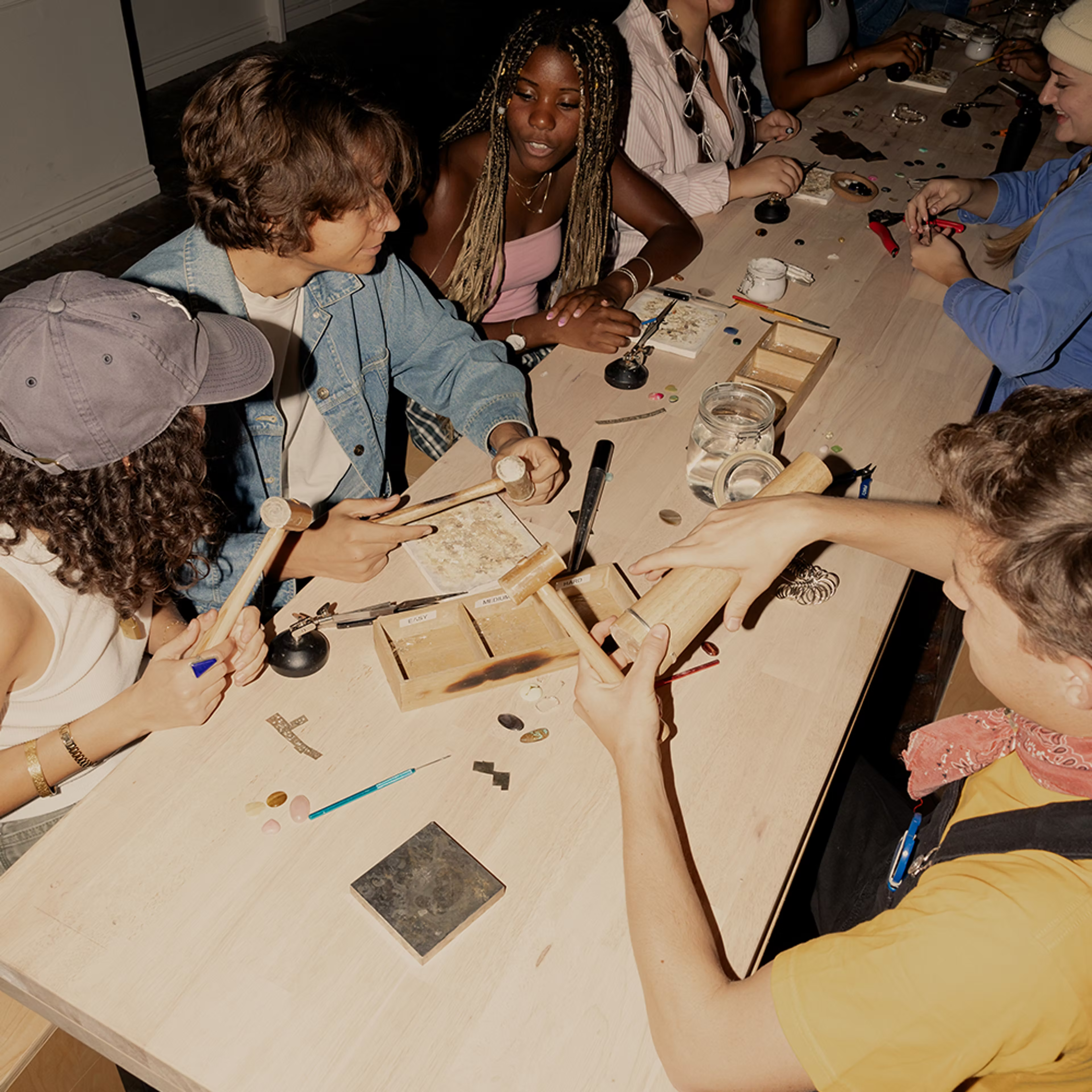 Our Provo location is only open for appointments. Click here to book a silversmithing jewelry workshop. Click here to book a permanent jewelry appointment.