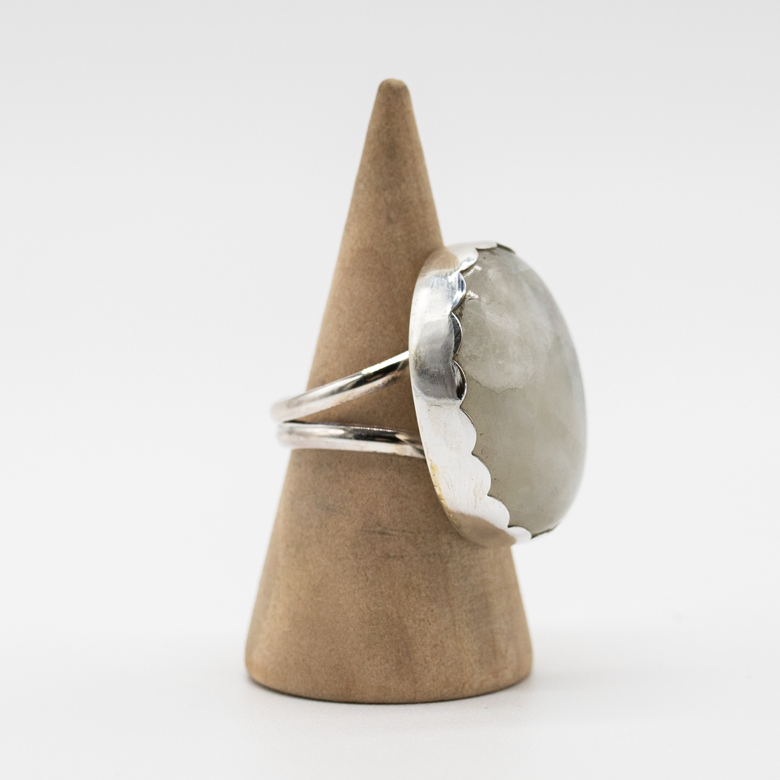 Say hello to Lunar Milkshake — a glossy moonstone ring that catches the light like moonbeams on fresh snow. She’s soft, mysterious, and just a little magical. Basically, if moonlight had a jewelry collection, this would be the star.