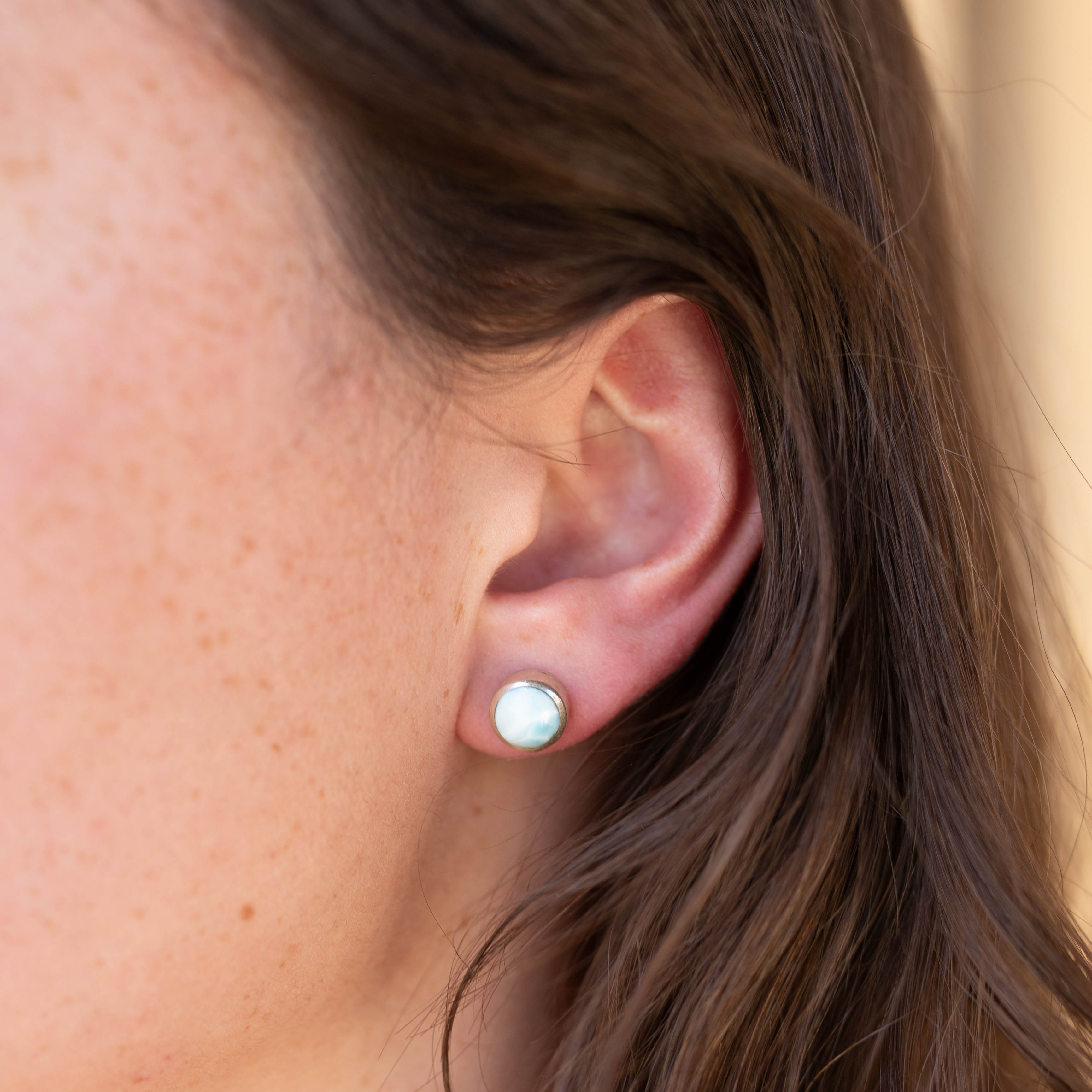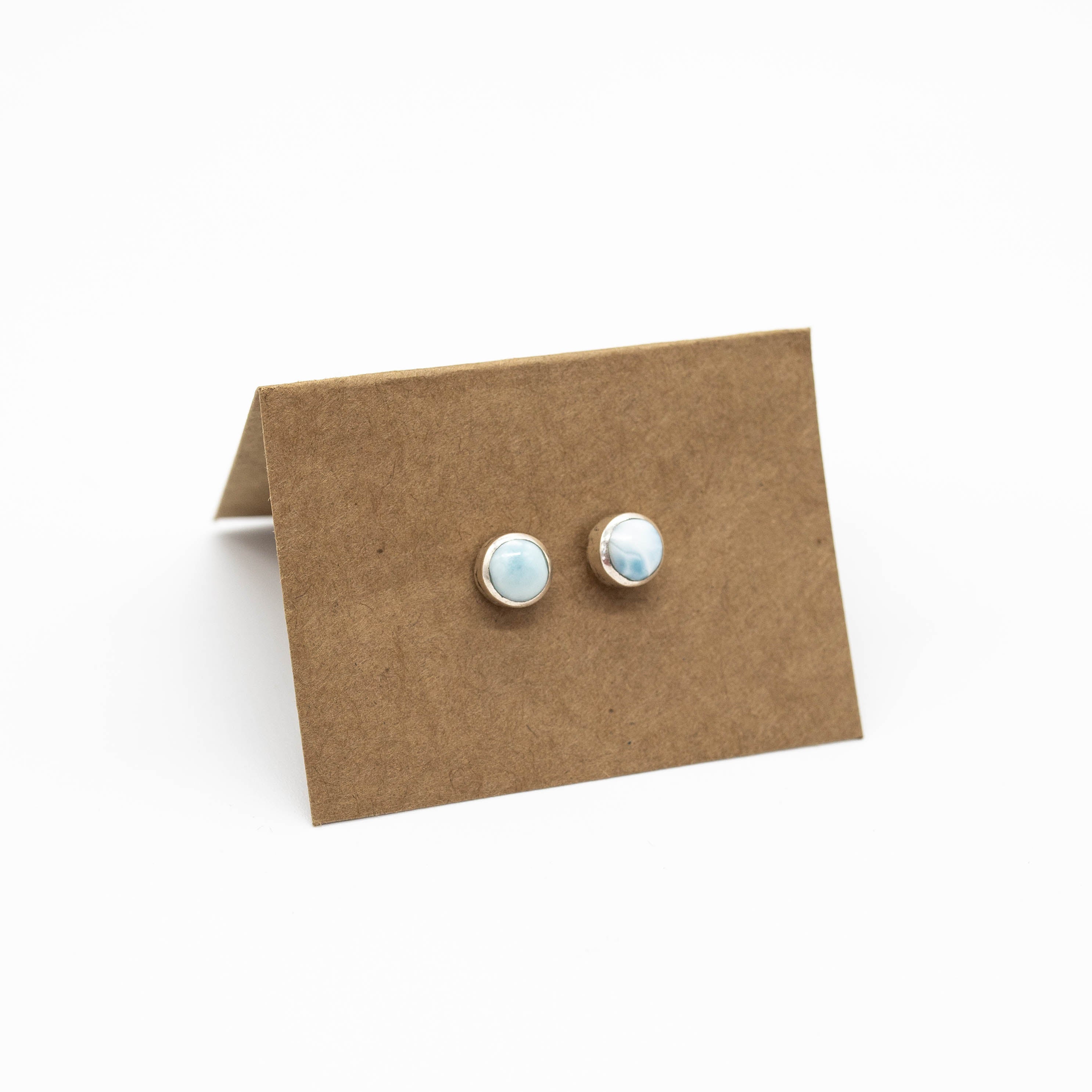 Larimar ocean drop earrings set in a smooth plain bezel that highlights the stone’s natural blue patterns. Elegant, lightweight, and perfect for everyday wear.