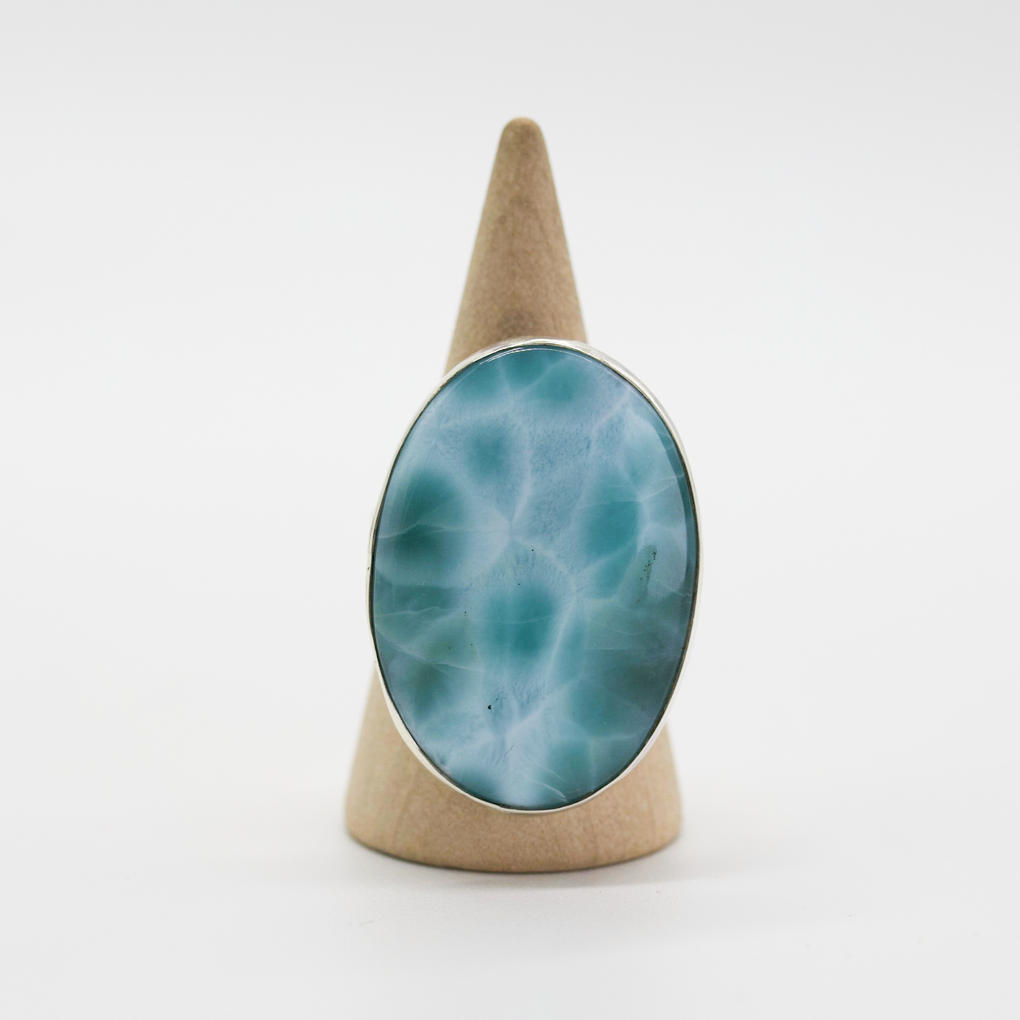 This ring looks like it’s picking up a signal straight from Atlantis. Ocean Wifi features a stunning piece of Larimar, a rare Caribbean gemstone known for its seafoam swirls and tranquil blue tones. It’s like having a tropical vacation on your hand—no passport required, just vibes.